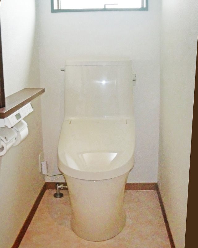 ・トイレは、節水型の便器に替えた他、手すりをつけ、断熱性の高いサッシに付け替え。