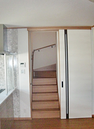 家族がリビングに集いやすいように、階段の動線を変更。高断熱のサッシ、